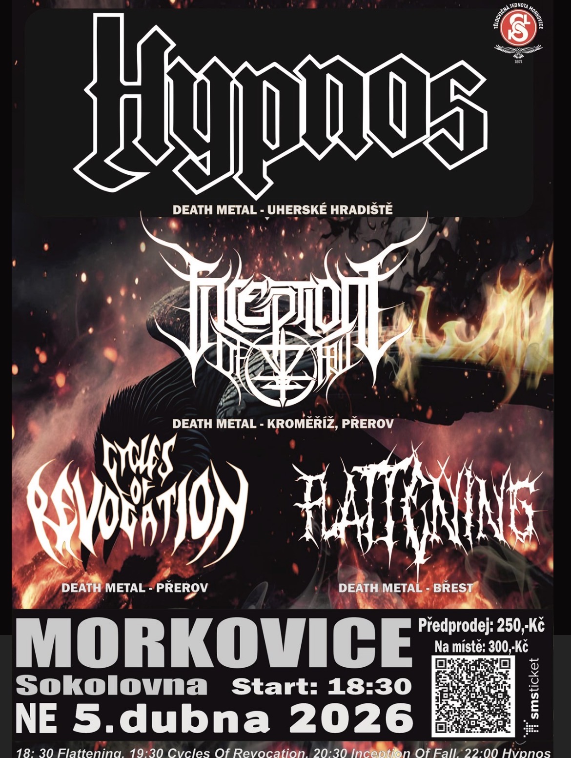 Fanoušci poctivého death metalu, tohle si do kalendářů zapište krvavým písmem! V neděli 5. dubna 2026 se Morkovická Sokolovna otřese v základech. HYPNOS přiváží svou temnou show v rámci turné “THE DEADCROW”.