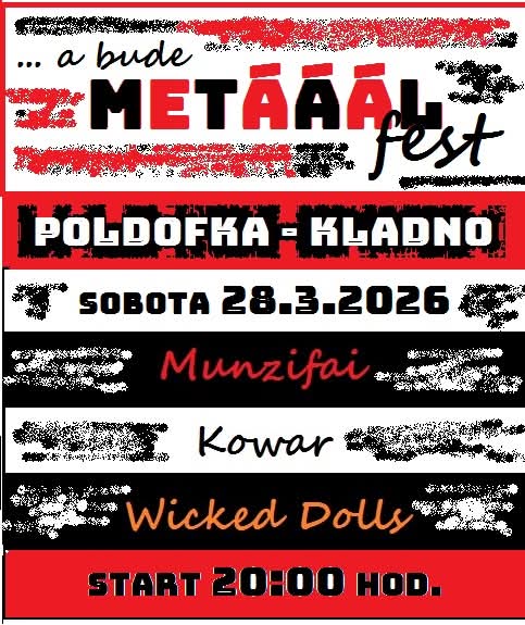 Ahoj,zveme vás na akci A bude metál fest,v sobotu 28.3. do kladenského klubu Poldofka.Zahrají kapely Kowar,Munzifai a Wicked Dolls.Začátek ve 20:00