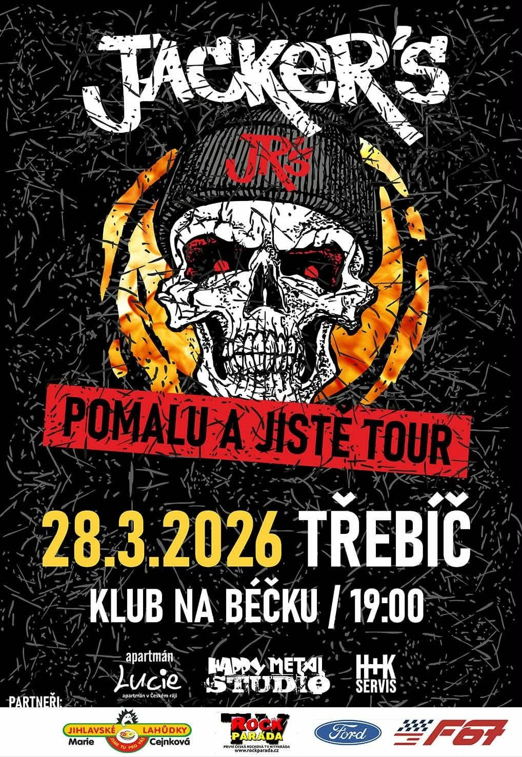 Další koncert skupiny Jacker's v rámci turné Pomalu a jistě tentokrát v Třebíči v klubu Béčko,kde je připravený nový a dlouhý set.Těšit se můžete na starý i nový fláky,které ještě nikde nehráli.Bezmála dvě hodiny pořadnýho nářezu.jak jinak než na plný plyn.