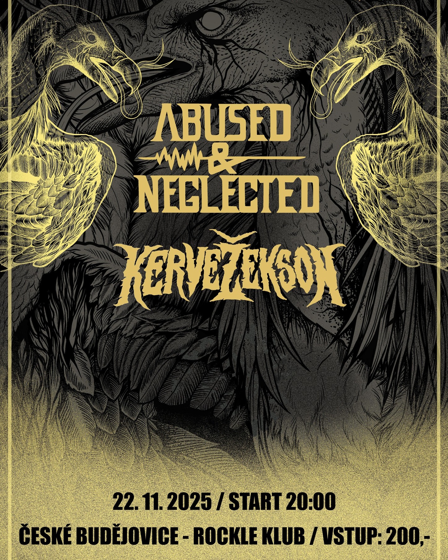 Abused & Neglected míří do Budějovic! V sobotu 22. 11. 2025 od 20:00 v Rockle Klubu oslaví svou první dekádu pořádnou dávkou metalu a speciálním setlistem! Na pódiu je doplní Kervežekson – crossoverová smečka, která vypustí svůj krak’en’roll! Buď u toho, když se bude slavit poctivý rock’n’metal!