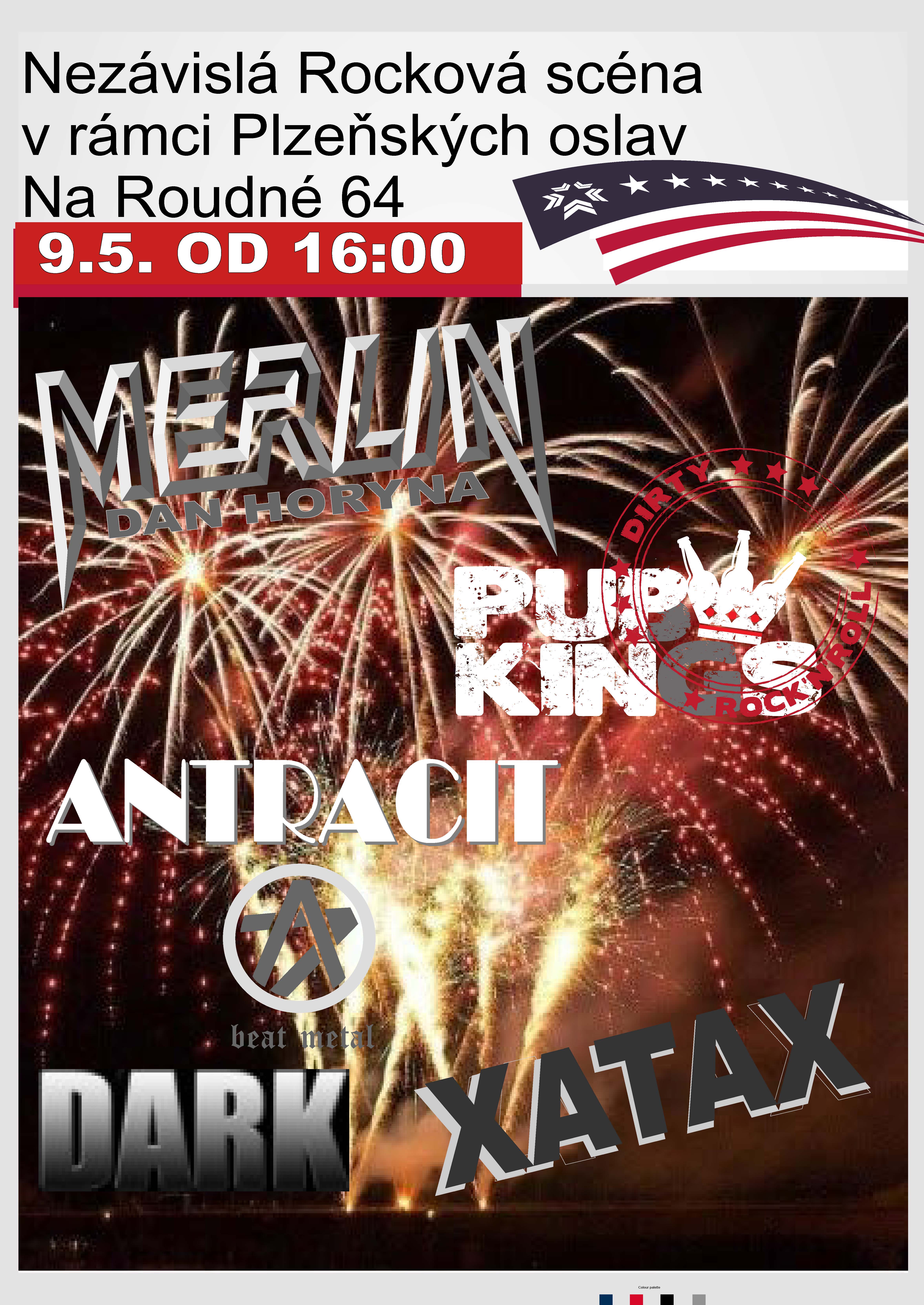 Nezávislá rocková scéna v rámci Plzeňských oslav svobody - letos tedy až víkend následný a to v sobotu 9.5. Takže to vlastně celé tímto zavřeme. A to za plného nasazení kapel Merlin, Pubkings, Antracit, Dark a Xatax.