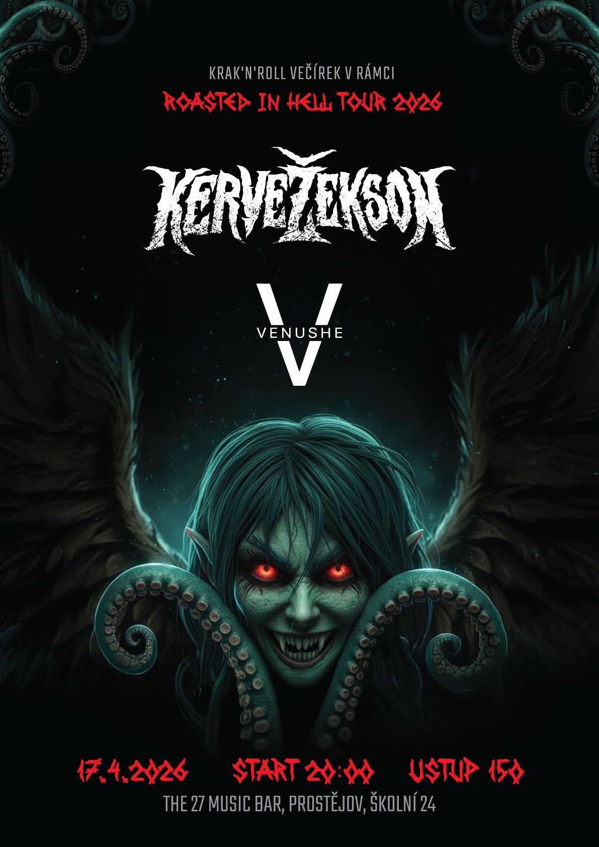 V rámci neoficiálního testu akustické diverzity proběhne v Prostějově 17. 4. v prostorech The 27 Music Bar experimentální kulturní událost. KERVEŽEKSON + VENUSHE. Cílem akce je ověřit, zda kombinace krak’n’rollu a alternative rocku dokáže přispět k posílení kulturní soudržnosti obyvatelstva, zvýšení regionální vibrační stability a případně i ke zlepšení nálady účastníků.