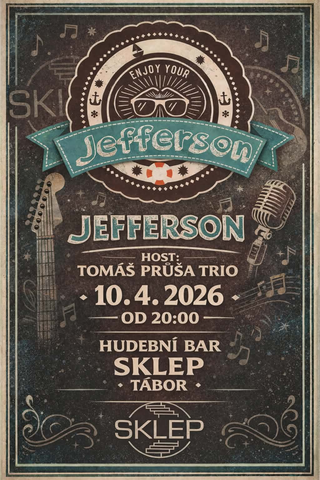 Pop-rocková kapela Jefferson a folk-rockové Tomáš Průša trio spojí síly v pátek 10.4.2026 od 20 hodin v hudebním klubu Sklep Bar Tábor. Kdo si chce užít fajn večer, plný pohodové české autorské hudby, doražte!