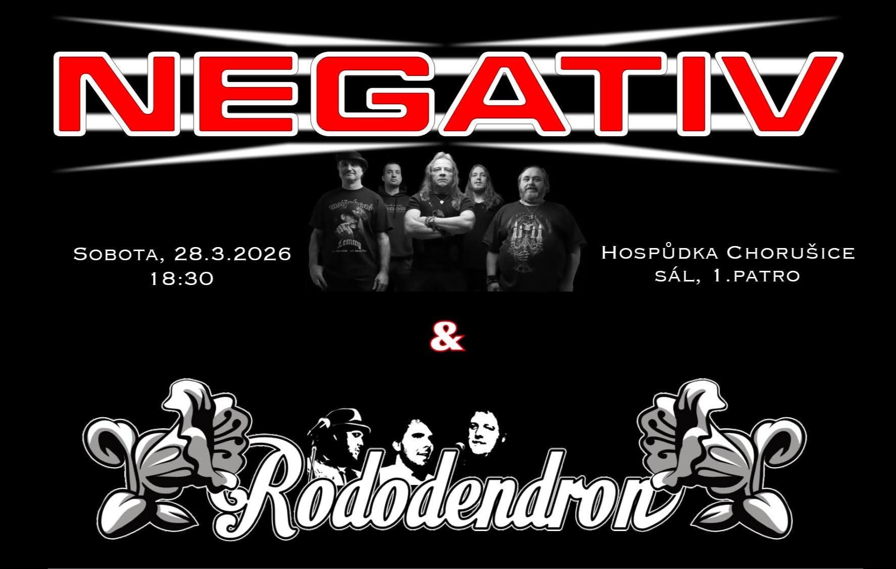 Zahraje nám pražská kapela NEGATIV a jako předkapela zahraje RODODENDRON.