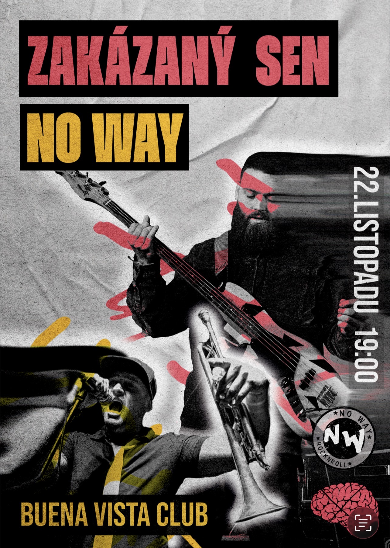 22.listopadu zahrají v plzeňském Buena Vista klubu kapely No Way a Zakázaný sen. Večer plný energické punkrockNrollové muziky s premiérou videoklipu Záchytka kapely No way.