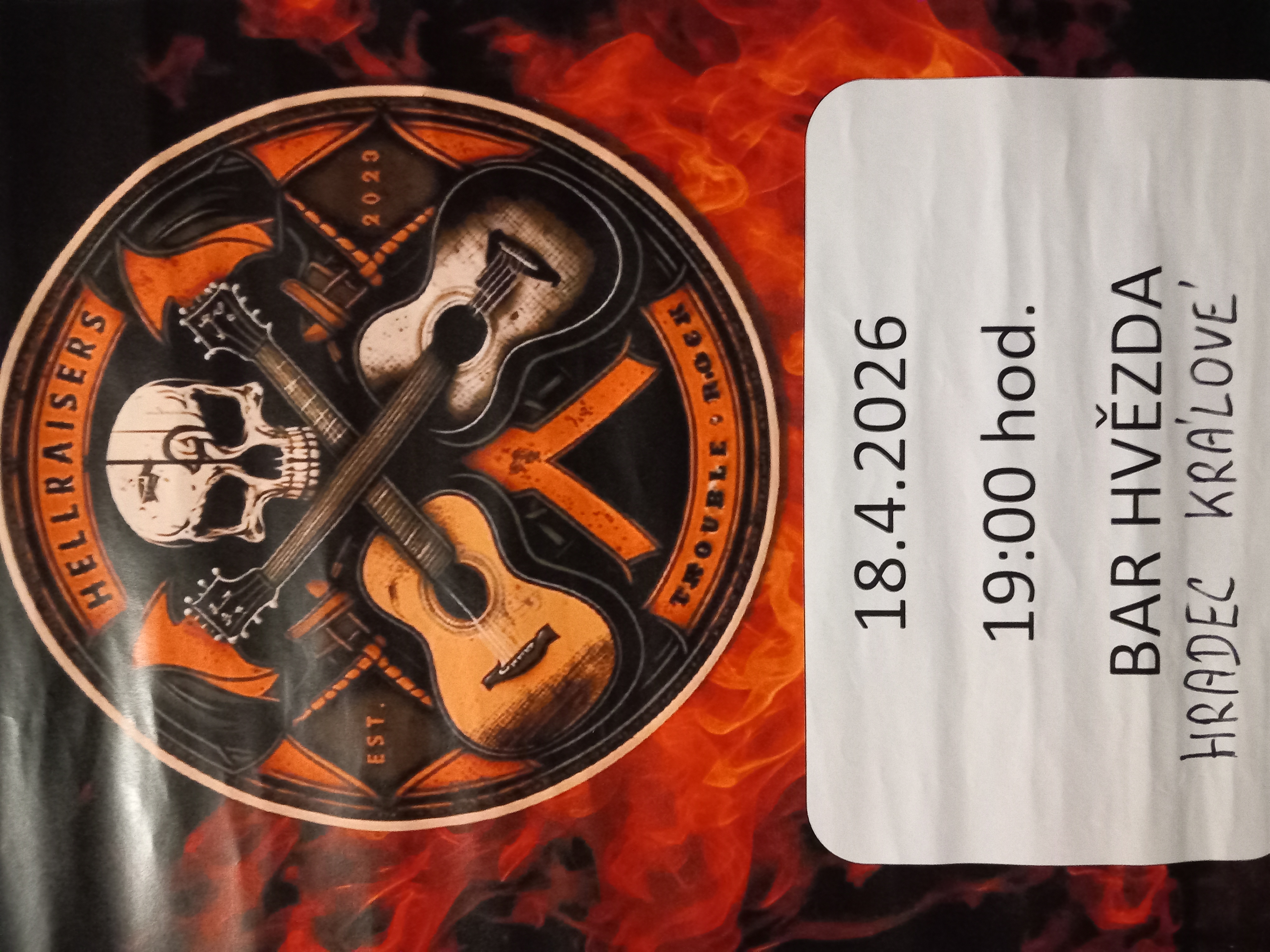 Ahoj všem. V sobotu 18.4.2026 od 19.00 nám v baru Hvězda v Hradci Králové zahraje kapela HELLRAISERS. Těšíme se na vás