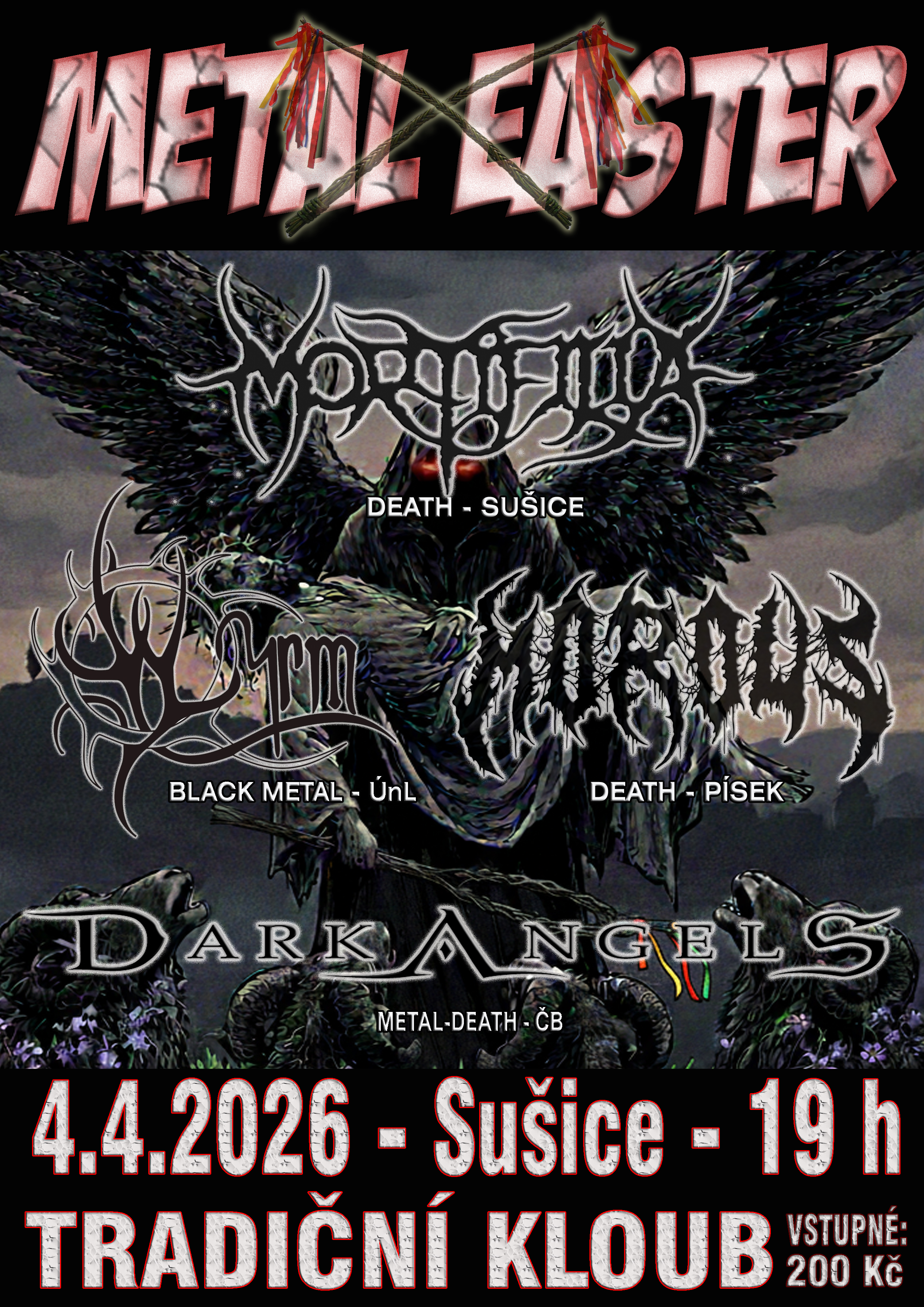 Přijeďte zapařit 4.4.2026 do Sušice na tradiční Metal Easter III. – klub Tradiční KlOUb Od 19 hodin, vstupné 200 Kč. Vystoupí: Mortifilia – Death Metal, Dark Angels - dark metal, Morous – death a Wyrm – black metal. Těšíme se, přátelé!🤘🤘🤘
