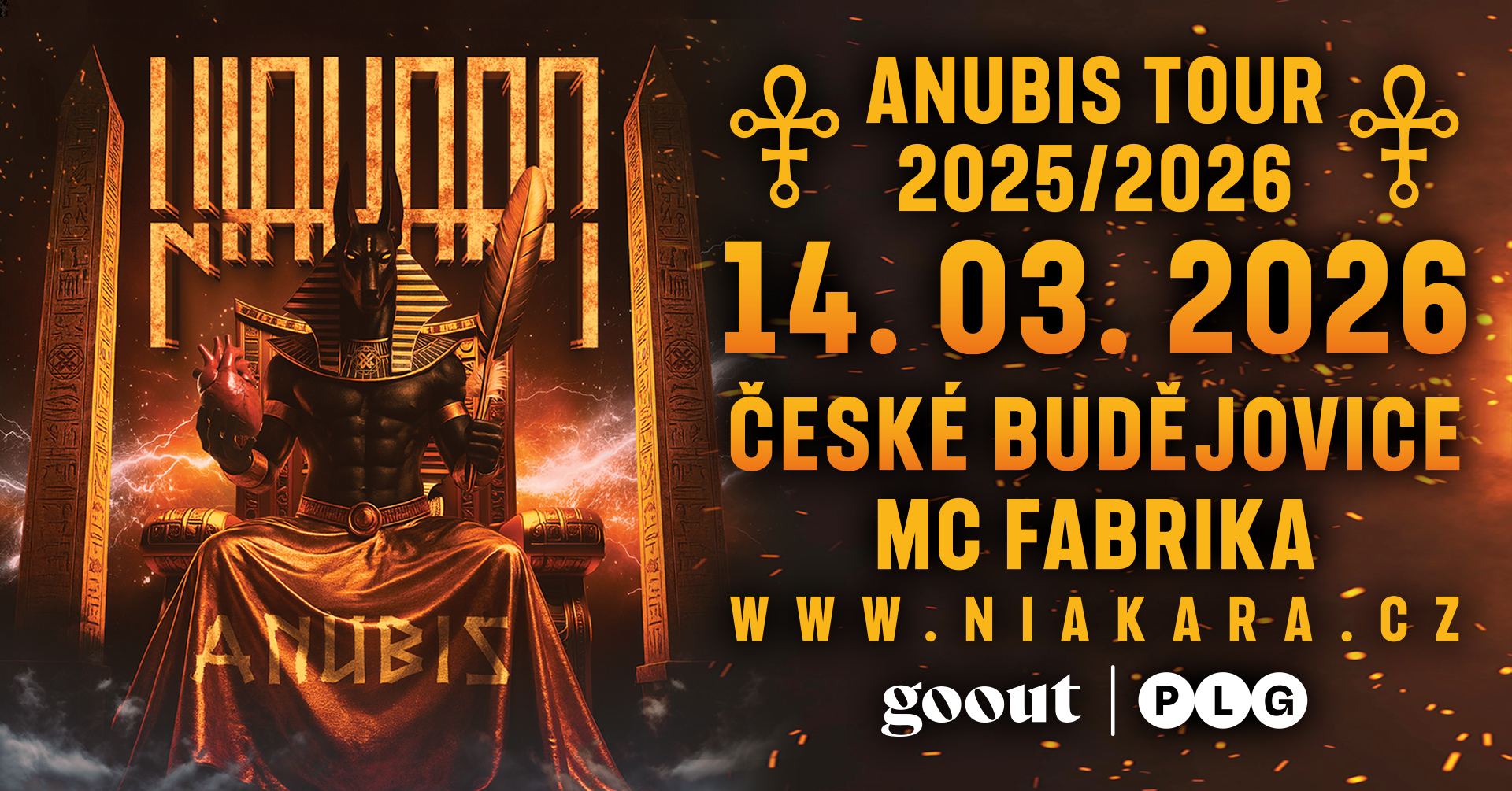 Niakara, česko-slovenská metalová formace vedená Zdeňkem Kubem (ex Arakain), pokračuje v rámci Anubis Tour 2026 koncertem na jihu Čech.. 14. března vystoupí v Českých Budějovicích v MC Fabrika. Těšit se můžete na skladby z aktuálního EP Anubis i léty prověřené songy. Speciálním hostem večera bude kapela Menhir.