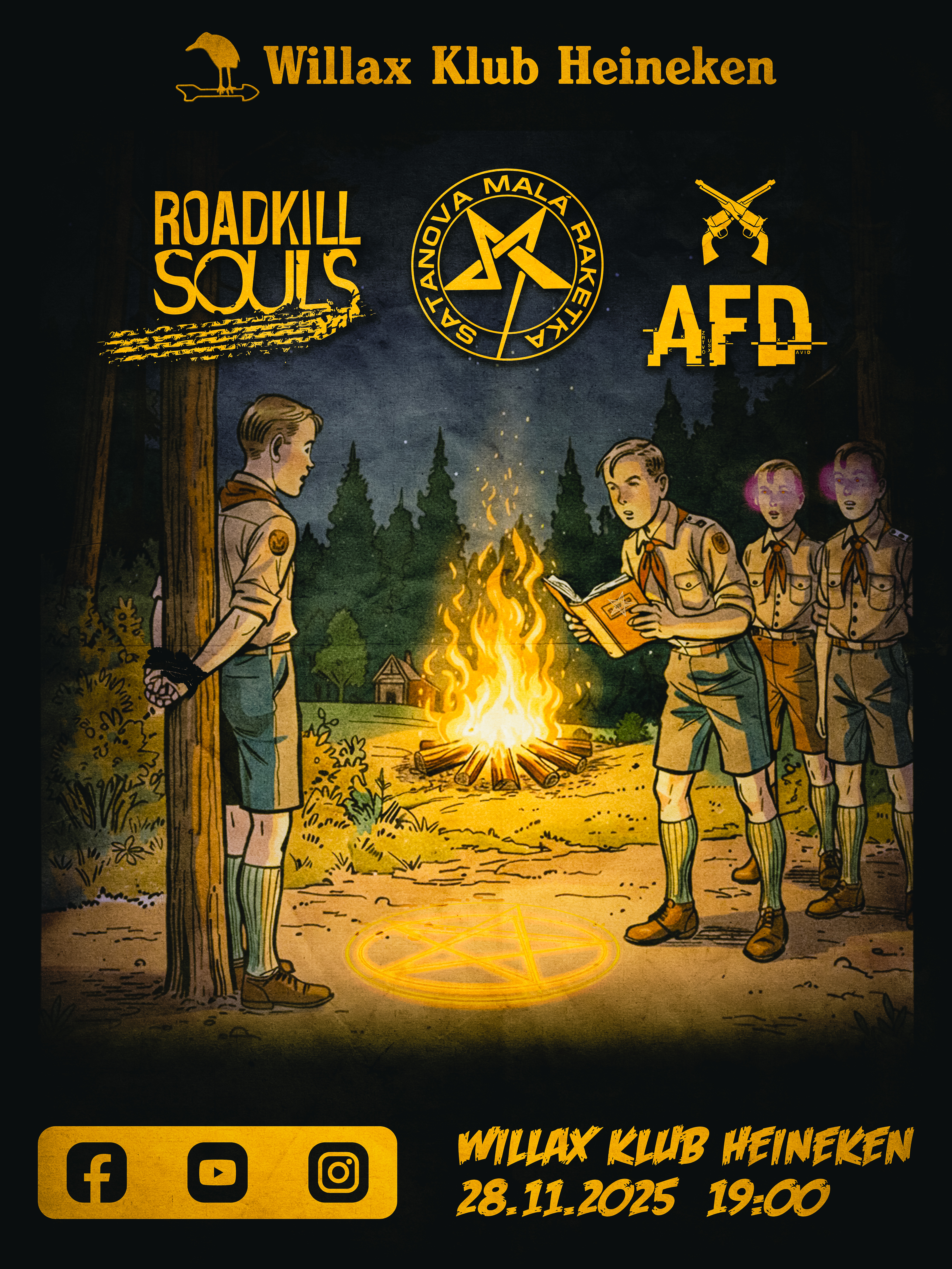 V Mladé Boleslavi v klubu Willax Heineken vystoupí 28.11. kapely Satanova Malá Raketka, All Friends Dead a Roadkill Souls. Doražte!