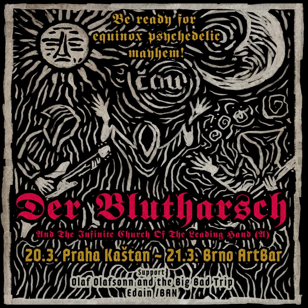 Po sedmi letech se do Prahy vrací rakouská psychedelická legenda Der Blutharsch and the Infinite Church of the Leading Hand. Koncert proběhne 20. 3. v mystickém čase jarní rovnodennosti v Klubu Kaštan. Support: Olaf Olafsonn and the Big Bad Trip. Předprodej pouze v síti BOOM: connect.boomevents.org. Kapacita omezená.