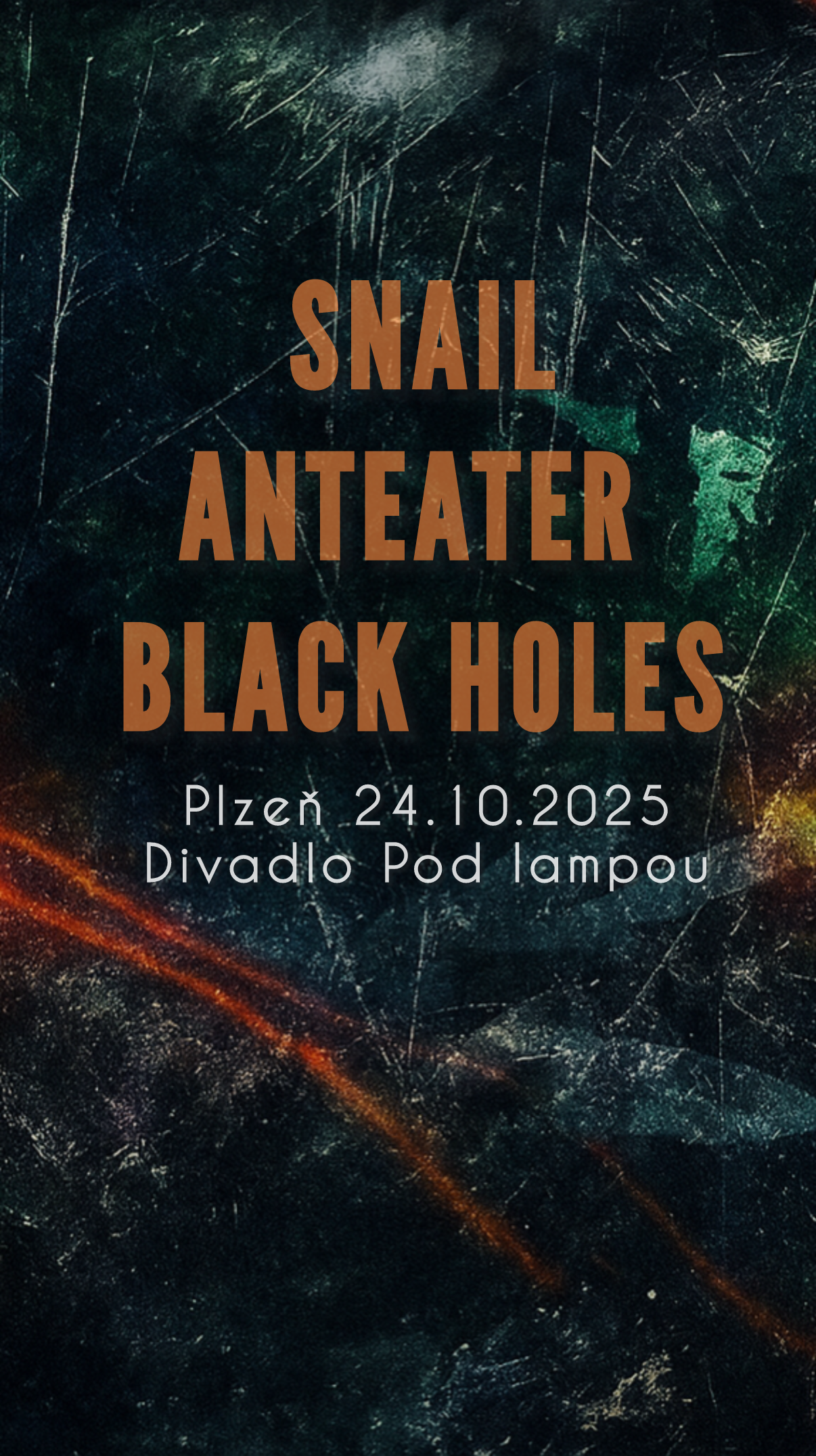 Všechny zveme na rock-alternativ-metal večírek do plzeňského Divadla Pod lampou! Těšit se můžete na Black Holes, Anteater a Snail. Začátek v 19:30 hod.